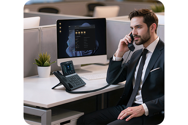O Yealink T85W combina desempenho avançado com um formato mais compacto, destacando sua tela colorida de 5.5″ de alta definição e design elegante com materiais antimicrobianos. Seu áudio aprimorado melhora a clareza durante as chamadas, oferecendo uma comunicação mais confortável no dia a dia. Com Wi‑Fi 6, Bluetooth 5.0, portas USB A/C, suporte a headsets e expansão, além de 16 contas SIP e até 60 teclas DSS, ele se encaixa perfeitamente em equipes que precisam de produtividade contínua sem ocupar muito espaço na mesa.